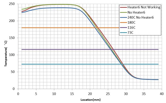 上文中提到,仿真結果需要體現輸料管中的溫度分布,故在后續工藝時對輸料管的溫度隨位置變化的曲線進行展示如下。