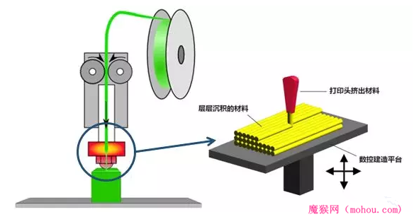 目前陶瓷3D打印成型技術(shù)主要可以分為噴墨打印技術(shù)(IJP)、熔融沉淀技術(shù)(FDM)、分層實(shí)體制造技術(shù)(LOM)、選擇性激光燒結(jié)技術(shù)(SLS) 和立體光固化技術(shù)(SLA)等。 使用這些技術(shù)打印得到的陶瓷坯體經(jīng)過(guò)高溫脫脂和燒結(jié)后便可得到陶瓷部件。根據(jù)成型方法和使用原料的不同,每種打印技術(shù)都有自己的優(yōu)缺點(diǎn),發(fā)展程度也有差距。 1熔融沉積造型(FDM) 熔化沉積造型法由美國(guó)學(xué)者Scott Crump于1988年研制成功,其以熱塑性絲狀為原料,絲通過(guò)可在X-Y方向上移動(dòng)的液化器熔化后噴頭噴出,根據(jù)所涉及部件的每一層形狀,逐條線、逐個(gè)層的堆積出部件。FDM使用的原材料有聚丙烯、丙烯腈-丁二烯鑄造蠟質(zhì)等。