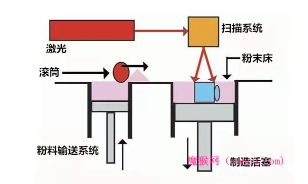 3DP具有能夠大規(guī)模成型出陶瓷部件,成本較低的優(yōu)勢(shì),但也具有黏結(jié)劑黏合強(qiáng)度受限導(dǎo)致部件強(qiáng)度有限,難以得到機(jī)械性能優(yōu)良的陶瓷器件的劣勢(shì)。 5激光選區(qū)燒結(jié)/熔融(SLS/SLM) SLM 的思想最初由德國(guó)Fraunhofer研究所于1995年提出,SLS和SLM原理與三維印刷技術(shù)較類似,將粘接劑換為激光束。在高功率比重激光器激光束開(kāi)始掃描前,水平鋪粉輥先把金屬粉末平鋪到加工室的基板上,然后激光束將按當(dāng)前層的輪廓信息選擇性地熔化基板上的粉末,加工出當(dāng)前層的輪廓,然后調(diào)入下一圖層進(jìn)行加工,如此層層加工,直到整個(gè)部件加工完畢。
